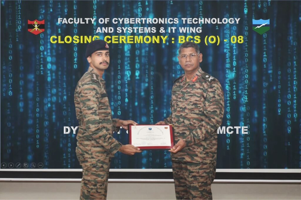 At a formal closing ceremony, Major General Gautam Mahajan, SM, Deputy Commandant and Chief Instructor of MCTE, felicitated the graduating officers and presented awards to outstanding performers. Among them, Captain Suprateek Jha was adjudged the Best Student of the course, reflecting excellence in mastering complex cyber security concepts and operational applications.