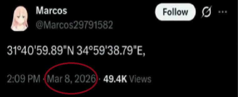 On March 8, 2026, an anonymous user on X posted something unusual, 31°40’59.89″N, 34°59’38.79″E , the exact GPS coordinates of a major Israeli communications facility. The post was a reply in a thread about the Iran-Israel war, essentially suggesting that Iran or Hezbollah should hit this site. The original thread was about Iran’s own satellite facility being destroyed by Israeli and US strikes. The post was essentially saying: here’s where Israel’s equivalent is, go hit it.