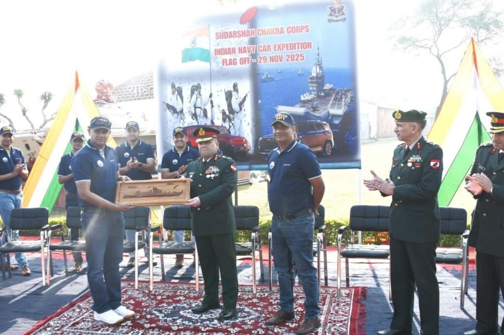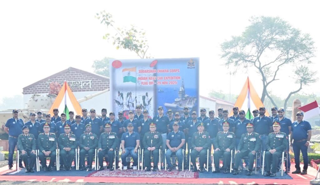 Bhopal: Lt Gen Arvind Chauhan, YSM, SM, GOC, Sudarshan Chakra Corps, today ceremoniously flagged off a Naval Car Expedition at Dronachal Military Cantonment, Bhopal to commemorate the 290th anniversary of the illustrious Naval Dockyard, Mumbai. This event forms a vital part of a grand naval expedition journeying through Mumbai, Shimla, Kalpa and Kinnaur aimed at celebrating a remarkable legacy and strengthening the ties between India’s Tri services and the public.
